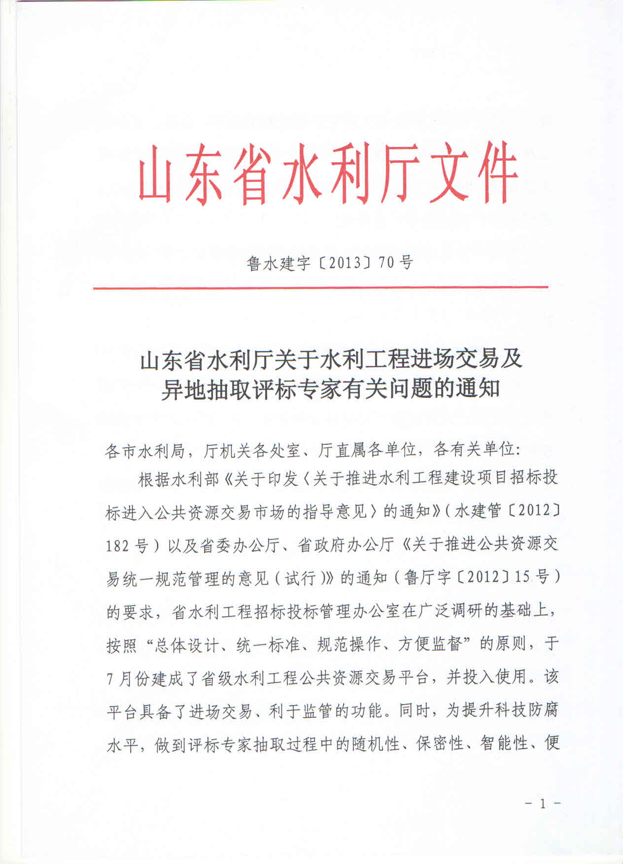 山東省水利廳關(guān)于水利工程進(jìn)場(chǎng)交易及異地抽取評(píng)標(biāo)專(zhuān)家有關(guān)問(wèn)題的通知